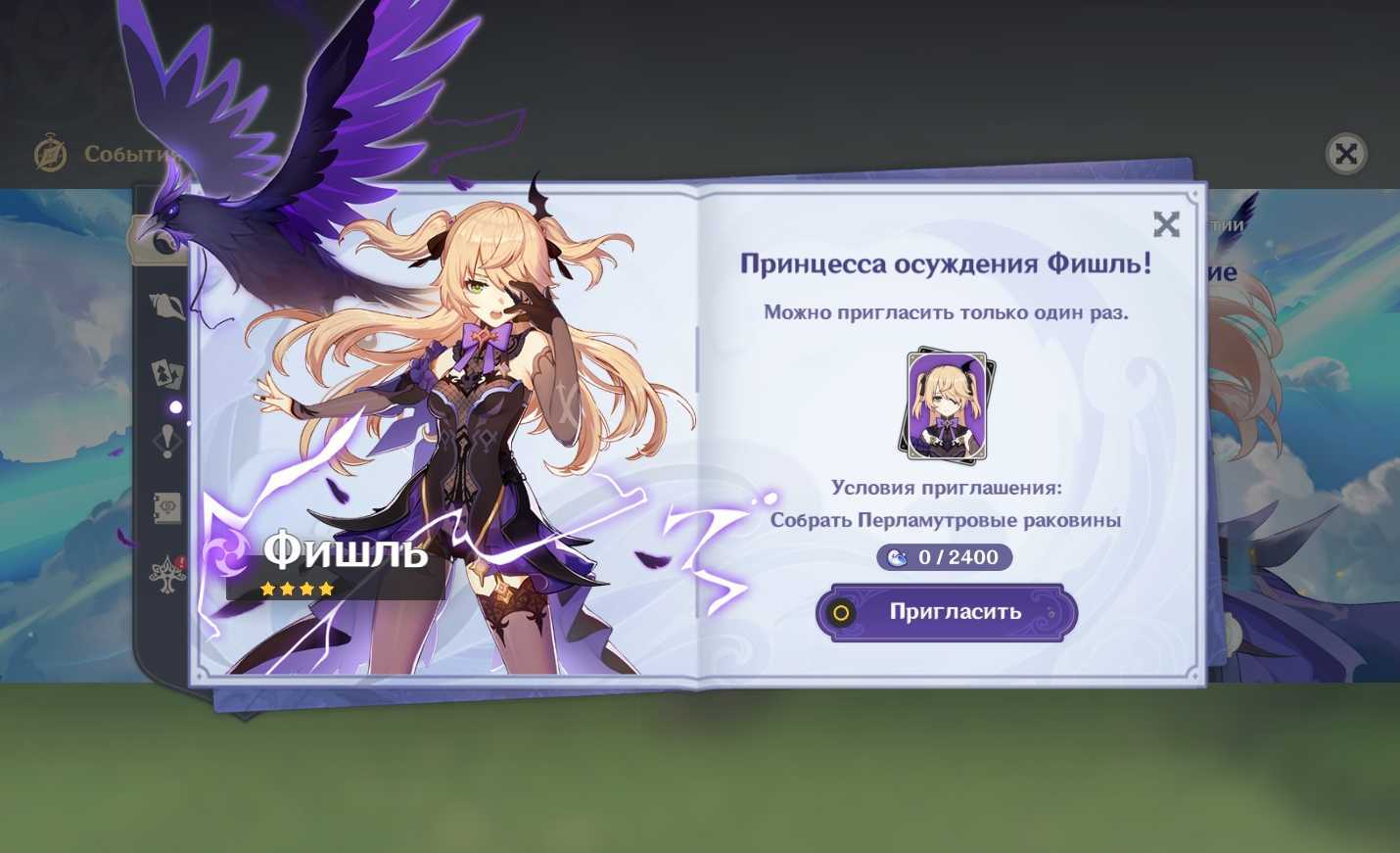 Чтобы получить Фишль, вам необходимо собрать 2400 Перламутровых раковин. Их выдают в качестве награды за зачистку подземелий Призрачного царства. О том, как пройти все испытания, мы рассказали в предыдущем разделе этой статьи. Накопив достаточно Перламутровых раковин, откройте баннер события «Летнее морское приключение» и кликните по значку «Приглашение принцессы».