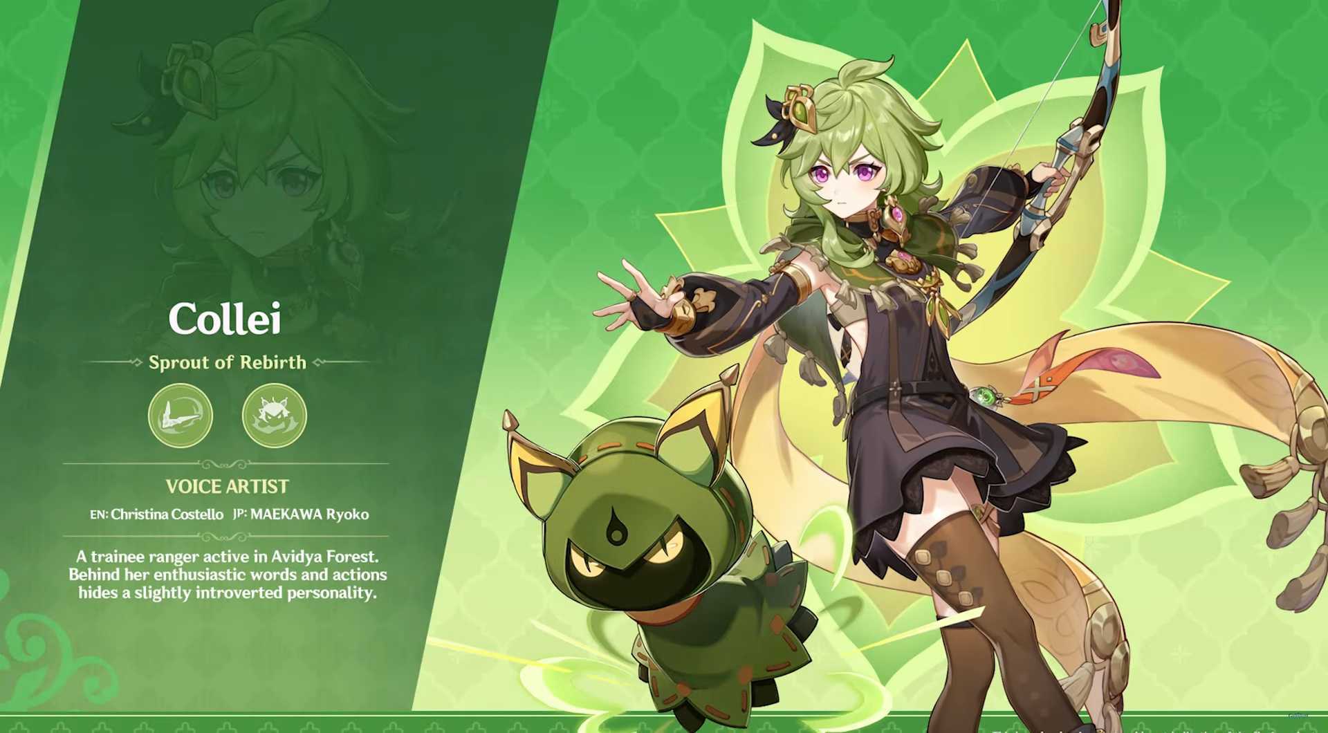 Коллеи – персонаж, ранее известный по манге. 4-звездочная Дендро-лучница. Также появится в баннерах обновления 3.0.