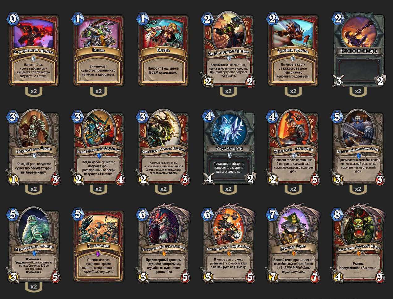 Если у вас нет Сильваны Ветрокрылой, Доктора Бума и Потасовки то крафтите их замените их на Мощный удар, Вихрь, Нестабильный вурдалак, командирский крик.