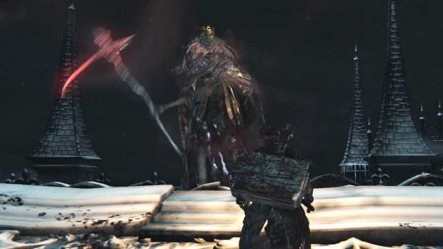 Сам бой проходит достаточно быстро и без особых курьезов. Если четко следовать тактике, у босса не будет даже шанса, чтобы зарядить свой электрический выброс по области или зацепить вас своими размашистыми ударами. Если трудности все-таки возникли, вы всегда можете потратить озарение, дабы призвать на помощь старого охотника. Колокол призыва стоит в начале тропинки к боссу – не пропустите.