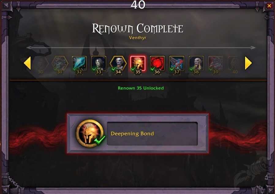 При повышении уровня известности вы будете получать доступ к наградам, уникальным для вашего ковенанта.