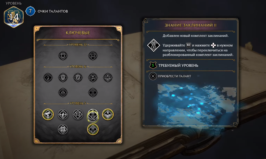 Помимо уровня, некоторые таланты имеют дополнительные требования: например, знание конкретного заклинания или получение определенного зелья. Даже если игрок достиг необходимого уровня, такой талант можно будет прокачать только после выполнения второго условия.