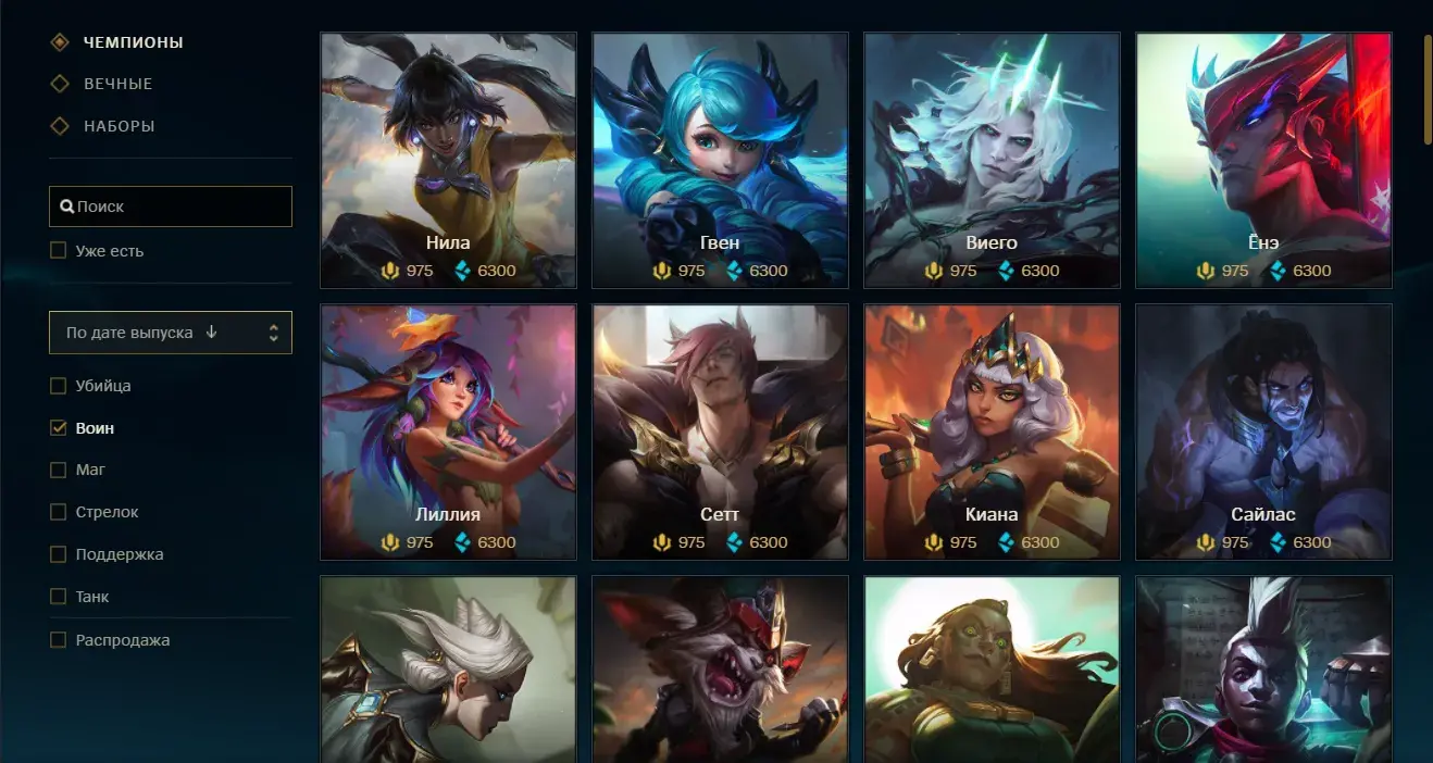 - Воин – воинами являются чемпионы, которые полагаются на ближний бой для нанесения урона противникам. У них обычно высокий урон, но у некоторых воинов низкий уровень прочности, если их второй ролью не является танк или их билд не содержит предметов на броню.