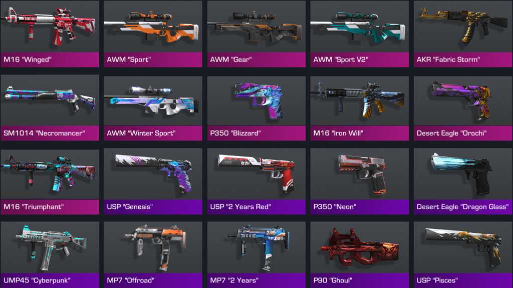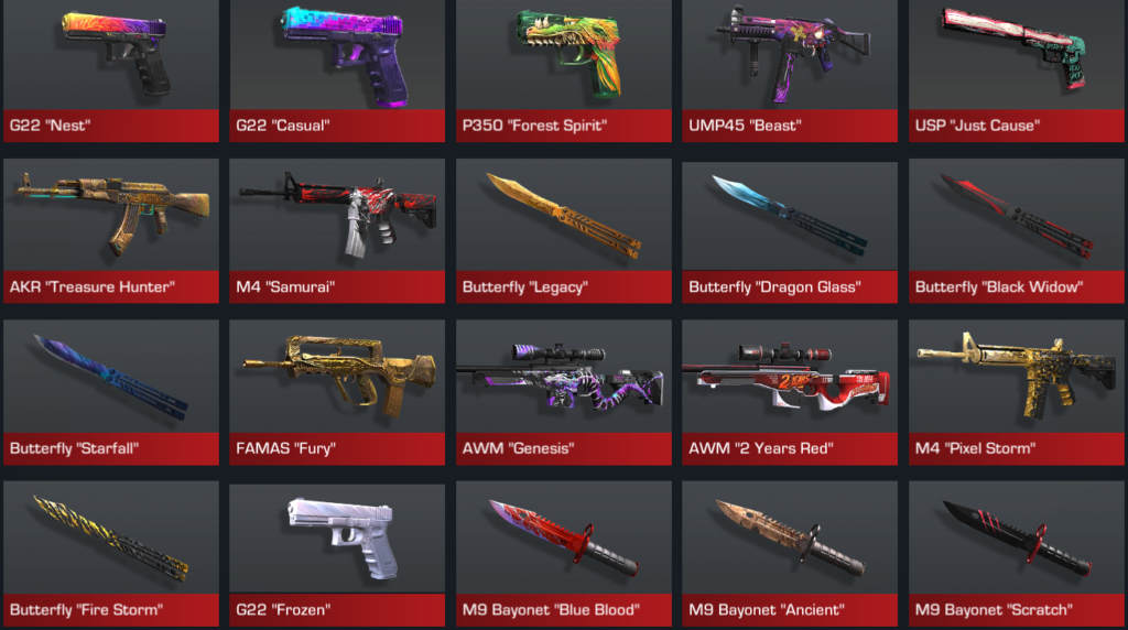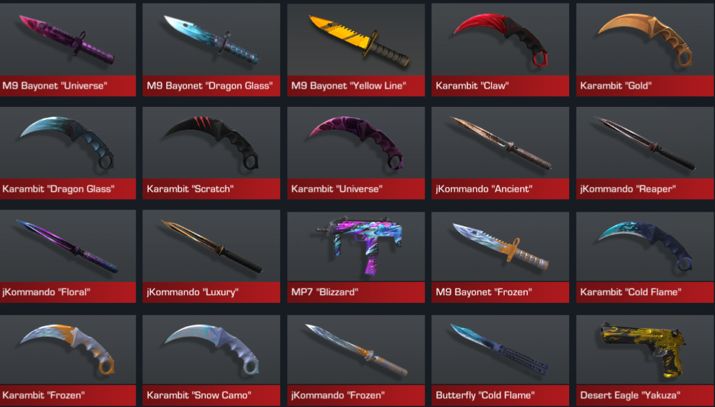 У вас будут открыты все скины с ножами. Даже те, которых вы не найдете в продаже на рынке.