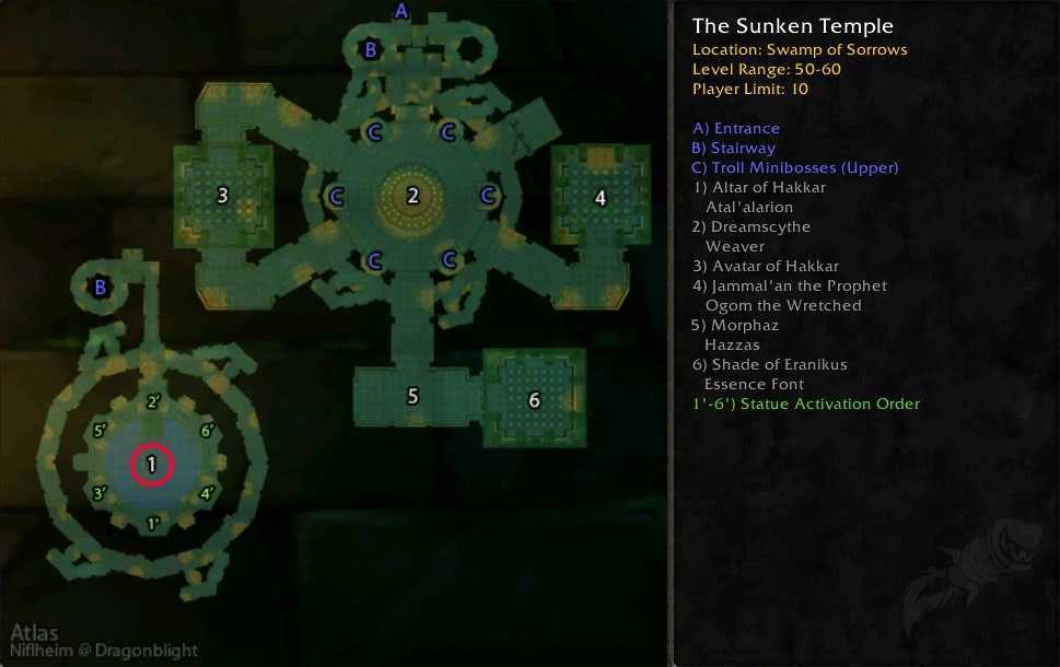 Как только статуя будет нажата в правильной последовательности, она станет зеленой. Если нет человек, пытающий её активировать, получит проклятие. По очереди нажимайте на Святыни, пока они не станут зелеными. Затем Атал’аларион появится в центре: