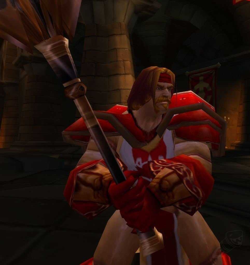 - Центурион из Алого ордена – стандартный рукопашный бой, кастует Боевой крик