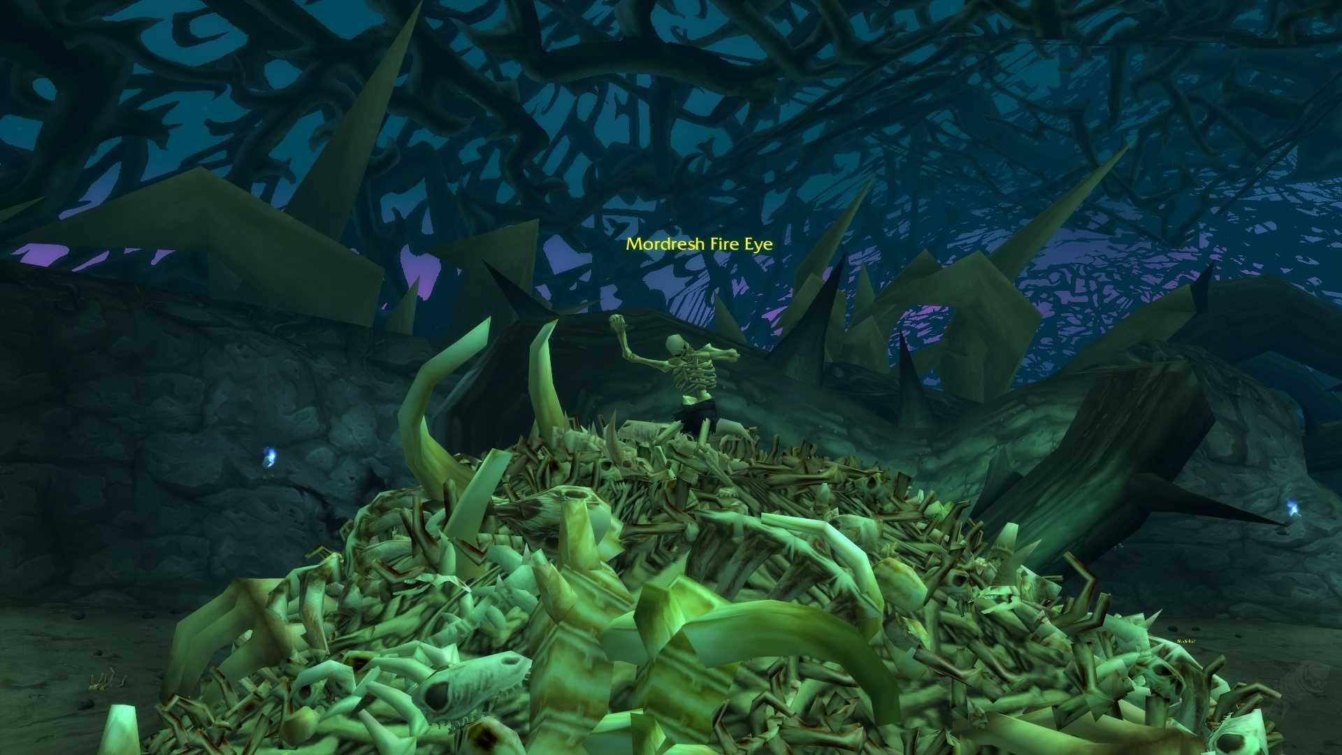 Мордреш Огненный Глаз — элитный скелет 39-го уровня, находящийся внутри курганов. Его можно найти танцующим на вершине кучи костей.