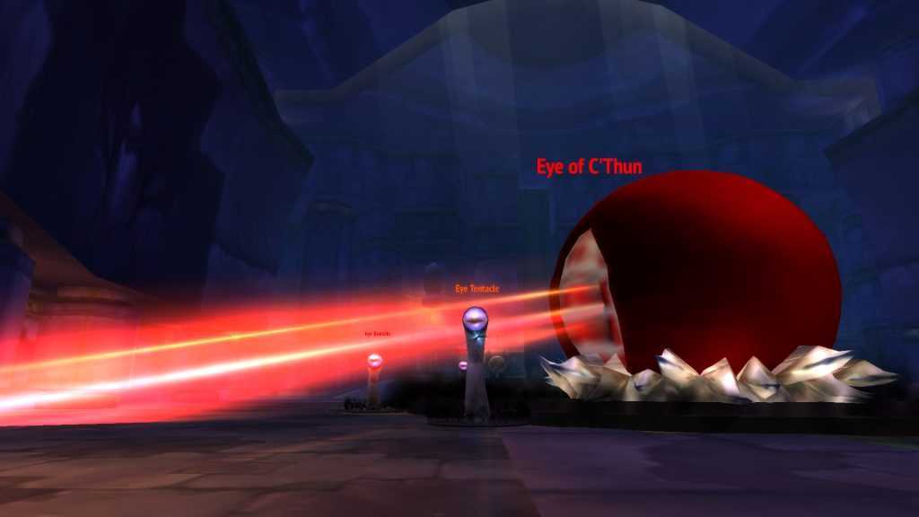 Начало боя — это очень важный момент, особенно в случае с К’Туном. Основная способность босса на первой фазе — это зеленый луч. Босс использует ее в первую же секунду боя. Луч применяется к случайной цели и наносит ей урон, а потом перескакивает на новую цель и наносит ей удвоенный урон. Луч распространяется до тех пор, пока у него не закончатся цели.