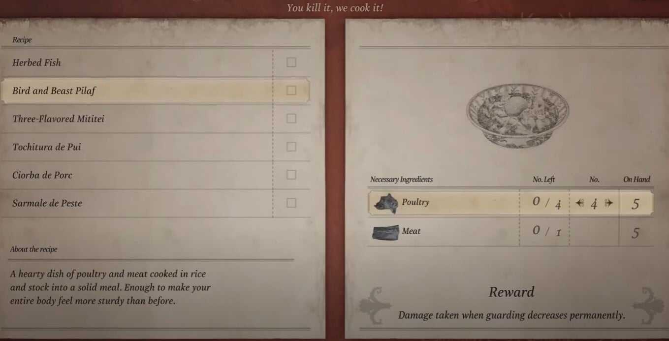 Неизвестно, насколько в Village открытый мир, чтобы полноценно говорить о том, что перед нами Far Cry в стиле «хоррор», но вот еще один момент лишь подтверждает догадки – охота и крафт. Правда, сам Итан ничего делать из мяса не может, нужно пойти к продавцу и уже у него создать желаемую еду. Причем некоторые блюда дают постоянные бонусы, например, повышение защиты при блоке.