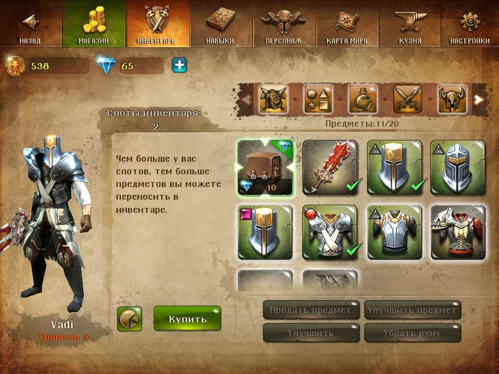 - Интерфейс на русском языке, поэтому проблем при взаимодействии с Dungeon Hunter 5 не возникнет.