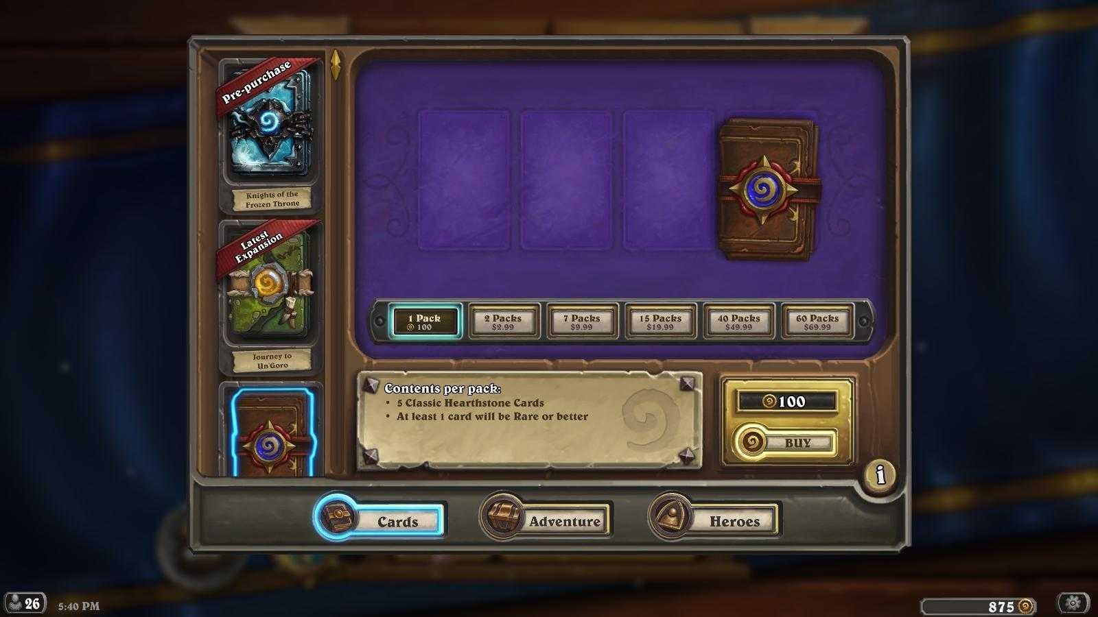 Таверна – каждую неделю Blizzard выпускает специальный игровой режим, который имеет свои собственные правила. Некоторые могут потребовать, чтобы вы построили колоду с определенными ограничениями, другие предоставят вам заранее подготовленную колоду, а некоторые даже могут быть совершенно случайными. Успешное завершение игры в Таверне вознаградит вас классическим пакетом. Разблокировка драки в таверне требует от вас достижения уровня 20 с героем.