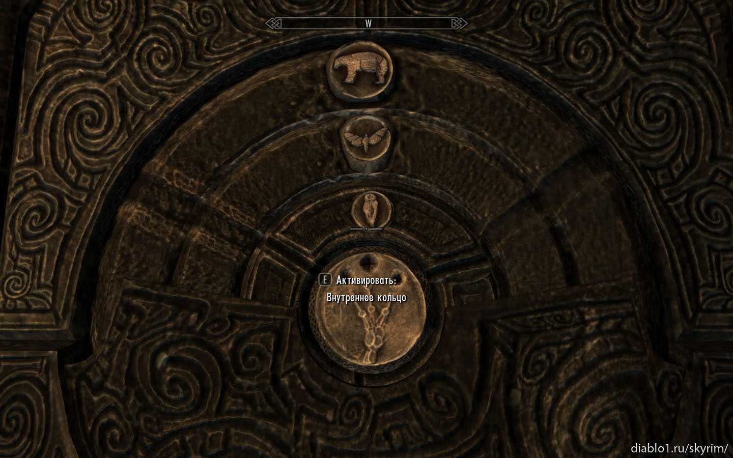 Проходите дальше и дальше, пока в итоге не выйдете в большую комнату, в центре которой будет полукруг, с текстом на языке драконов. Подойдя к этой