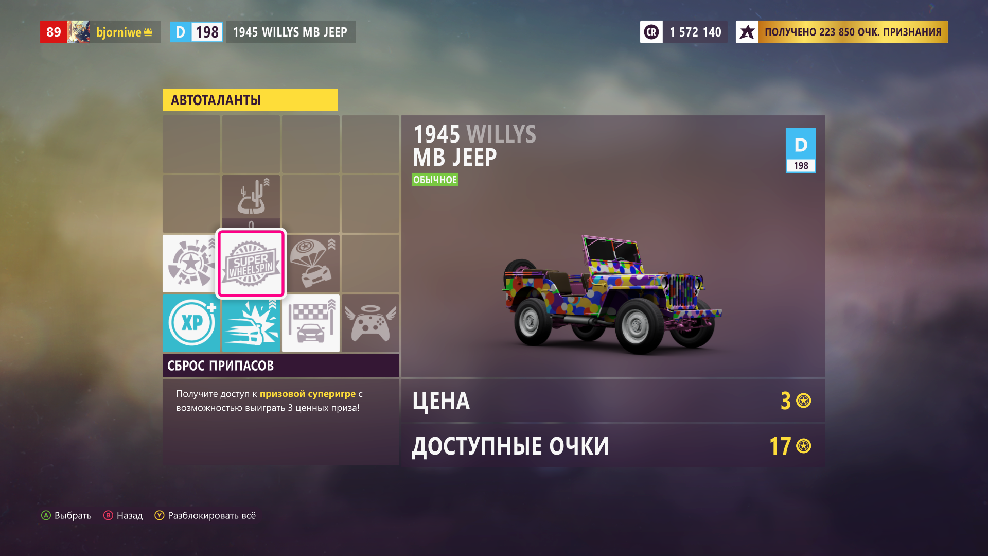 Когда накопится порядочное количество очков, купите много джипов Willy’s и вкачайте им суперпризовые рулетки. А потом можно доехать до любого гаража с раритетом и подарить этот джип – так очки вернутся, и снова можно купить партию джипов.