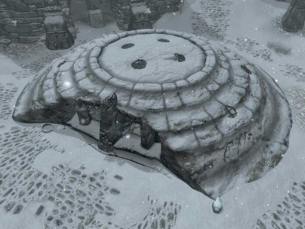 - Когда довакину велят взять книгу из Кургана Ингола в Скайриме, маркер может появиться у черного входа в подземелье. Чтобы найти его, нужно дойти до входа в Курган, местоположение которого видно по компасу, когда стоишь возле выхода.