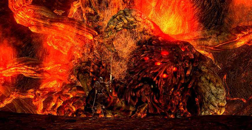 Непрокачанному игроку данный противник может доставить проблем. Плюс к этому соваться сюда не имеет смысла пока не будет убит Сиф Великий Волк, с которого падает Кольцо Арториаса. Именно оно защитит Полого от постоянного убывания здоровья в Бездне.